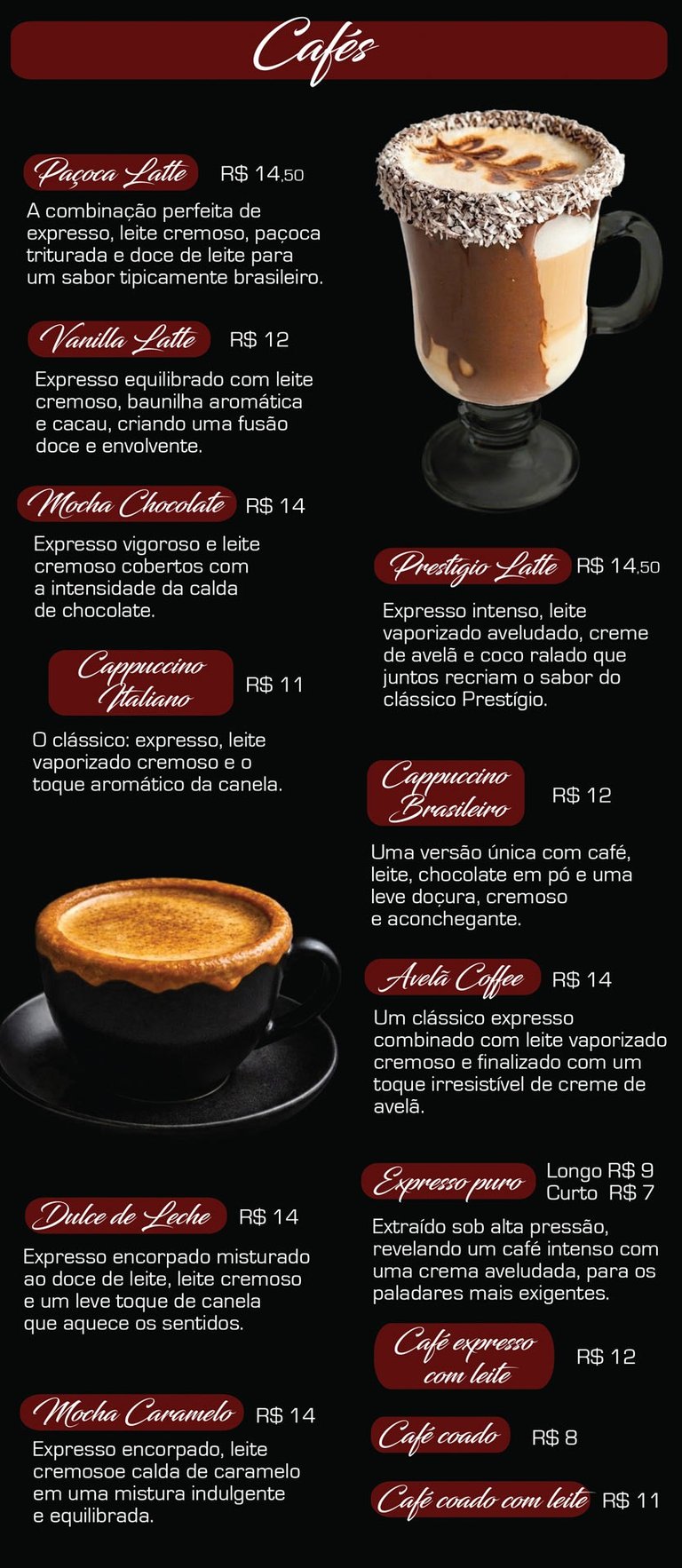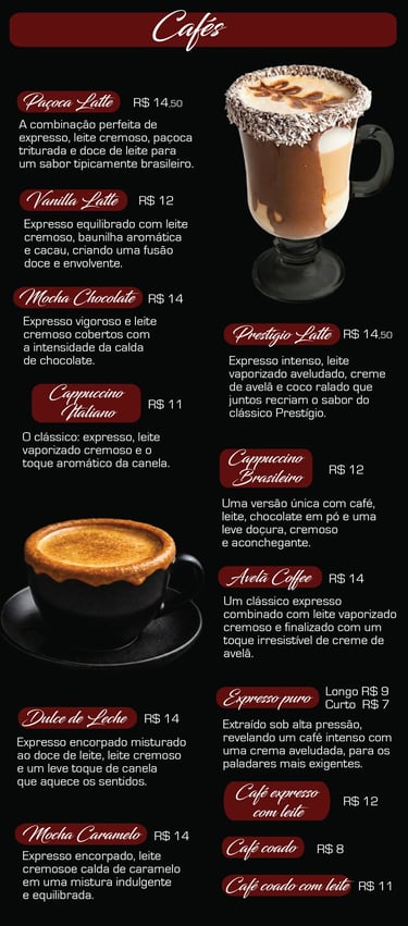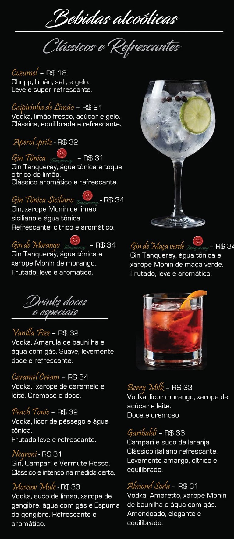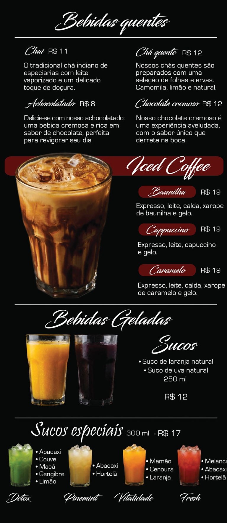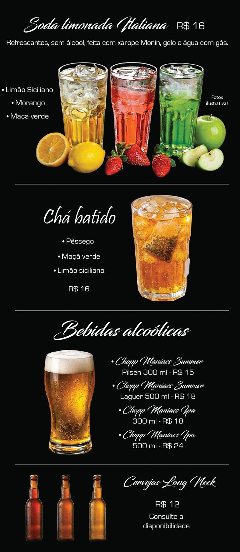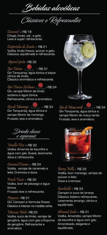 Cardápio de bebidas